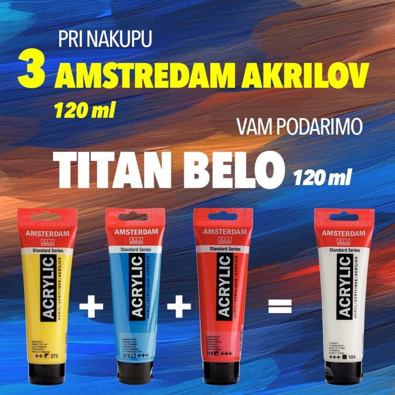 Barva Amsterdam akril 120ml, 408 Raw umber (art. 17094082) Amsterdam akril 120ml, 361 Light rose (art. 17093612) Amsterdam akril 120ml, 512 Cobalt Blue (art. 17095122) Amsterdam akril 120ml, 222 Naples Yellow L (art. 17092222) Amsterdam akril 120ml, 617 Yellow green (art. 17096172) Amsterdam akril 120ml, 568 Perm. blue violet (art. 17095682) Amsterdam akril 120ml, 702 Lamp Black (art. 17097022) Amsterdam akril 120ml, 366 Quinacridone rose (art. 17093662) Amsterdam akril 120ml, 621 Olive grren Light (art. 17096212) Amsterdam akril 120ml, 570 Phtalo blue (art. 17095702) Amsterdam akril 120ml, 253 Golden yellow (art. 17092532) Amsterdam akril 120ml, 267 Azo yellow lemon (art. 17092672) Amsterdam akril 120ml, 411 Burn Siena (art. 17094112) Amsterdam akril 120ml, 330 Persian rose (art. 17093302) Amsterdam akril 120ml, 268 Azo yellow L (art. 17092682) Amsterdam akril 120ml, 290 Titanium buff D (art. 17092902) Amsterdam akril 120ml, 661 Turquise green (art. 17096612) Amsterdam akril 120ml, 344 Caput mort. violet (art. 17093442) Amsterdam akril 120ml, 708 Paynes grey (art. 17097082) Amsterdam akril 120ml, 348 Perm. red purple (art. 17093482) Amsterdam akril 120ml, 675 Phthalo green (art. 17096752) Amsterdam akril 120ml, 582 Mangan bl. phthalo (art. 17095822) Amsterdam akril 120ml, 398 Napthol red light (art. 17093982) Amsterdam akril 120ml, 243 Greenish yellow (art. 17092432) Amsterdam akril 120ml, 234 Raw siena (art. 17092342) Amsterdam akril 120ml, 567 Perm. red violet (art. 17095672) Amsterdam akril 120ml, 289 Titanium buff L (art. 17092892) Amsterdam akril 120ml, 522 Turquise blue (art. 17095222) Amsterdam akril 120ml, 317 Transparent red medium (art. 17093172) Amsterdam akril 120ml, 710 Neutral grey (art. 17097102) Amsterdam akril 120ml, 369 Primary magenta (art. 17093692) Amsterdam akril 120ml, 517 Kings blue (art. 17095172) Amsterdam akril 120ml, 619 Permanent green Deep (art. 17096192) Amsterdam akril 120ml, 311 Vermilion (art. 17093112) Amsterdam akril 120ml, 274 Nick. titan. yellow (art. 17092742) Amsterdam akril 120ml, 231 Gold Ochre (art. 17092312) Amsterdam akril 120ml, 577 Perm. red violet L (art. 17095772) Amsterdam akril 120ml, 105 Titanium white (art. 17091052) Amsterdam akril 120ml, 557 Green blue (art. 17095572) Amsterdam akril 120ml, 396 Napthol red medium (art. 17093962) Amsterdam akril 120ml, 718 Warm grey (art. 17097182) Amsterdam akril 120ml, 318 Carmine (art. 17093182) Amsterdam akril 120ml, 104 Zinc white (art. 17091042) Amsterdam akril 120ml, 615 Emerald Green (art. 17096152) Amsterdam akril 120ml, 315 Pyrrole red (art. 17093152) Amsterdam akril 120ml, 224 Naples Yellow red (art. 17092242) Amsterdam akril 120ml, 227 Yellow ochre (art. 17092272) Amsterdam akril 120ml, 504 Ultramarin (art. 17095042) Amsterdam akril 120ml, 270 Azo yellow deep (art. 17092702) Amsterdam akril 120ml, 566 Prussian blue (art. 17095662) Amsterdam akril 120ml, 403 Vandyke brown (art. 17094032) Amsterdam akril 120ml, 399 napthol red deep (art. 17093992) Amsterdam akril 120ml, 272 Transparent yellow medium (art. 17092722) Amsterdam akril 120ml, 223 Naples Yellow D (art. 17092232) Amsterdam akril 120ml, 618 Perm.green Light (art. 17096182) Amsterdam akril 120ml, 519 Ultramarin Violet L (art. 17095192) Amsterdam akril 120ml, 292 Naples Yellow red L (art. 17092922) Amsterdam akril 120ml, 623 Sap green (art. 17096232) Amsterdam akril 120ml, 562 Grey blue (art. 17095622) Amsterdam akril 120ml, 269 Azo yellow medium (art. 17092692) Amsterdam akril 120ml, 551 Sky blue Light (art. 17095512) Amsterdam akril 120ml, 409 Burnt umber (art. 17094092) Amsterdam akril 120ml, 385 Quinacridone rose Light (art. 17093852) Amsterdam akril 120ml, 275 Primary yellow (art. 17092752) Amsterdam akril 120ml, 282 Naples yellow green (art. 17092822) Amsterdam akril 120ml, 605 Brilliant green (art. 17096052) Amsterdam akril 120ml, 507 Ultramarin violet (art. 17095072) Amsterdam akril 120ml, 735 Oxide Black (art. 17097352) Amsterdam akril 120ml, 316 Venetian rose (art. 17093162) Amsterdam akril 120ml, 622 Olive grren Deep (art. 17096222) Amsterdam akril 120ml, 572 Primary Cyan (art. 17095722) Amsterdam akril 120ml, 276 Azo Orange (art. 17092762) Amsterdam akril 120ml, 564 Brilliant blue (art. 17095642) Amsterdam akril 120ml, št. 217 Perm. lemon yellow light (art. 17092172) Amsterdam akril 120ml, št. 505 Ultramarin light (art. 17095052) Amsterdam akril 120ml, št. 556 Lilac (art. 17095562) Amsterdam akril 120ml, št. 660 Turquise green light (art. 17096602) Amsterdam akril 120ml, št. 664 Yellowish grey light (art. 17096642) Amsterdam akril 120ml, št. 750 Bluish grey light (art. 17097502)