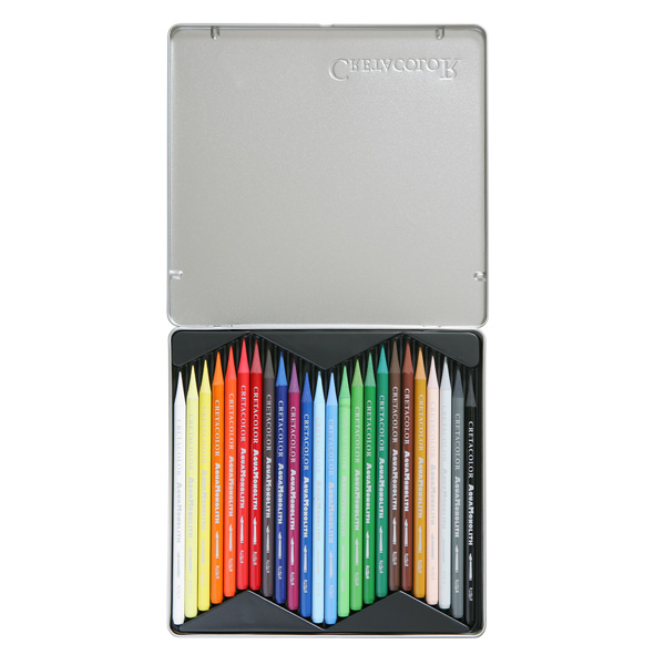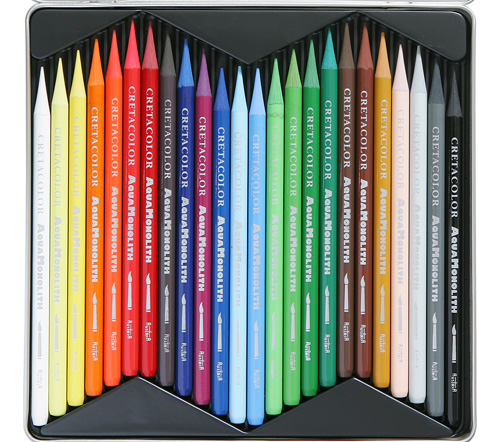 Komplet 24 Akvamonolith vodotopnih barvnih min, zaščitenih le s tenkim slojem obarvanega laka, ki se ujema z barvo svinčnika. Uporabniki so očarani nad mehkimi potezami ter bogatimi barvami Aquamonolitha. Z istim svinčnikom lahko delamo krepke ali nežne raznobarvne poteze različnih širin. Prihranite opilke in jih zmešajte z vodo, da pobarvate ozadje vaše slike!