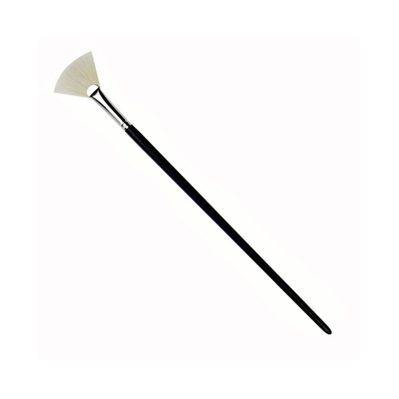 Pahljačasti čopič iz sintetičnih vlaken Brislon z dolgim mat črnim ročajem, primeren za oljne in akrilne barve. Elastična in obstojna vlakna omogočajo natančen nanos, od tankih slojev do gostih past in impastov.