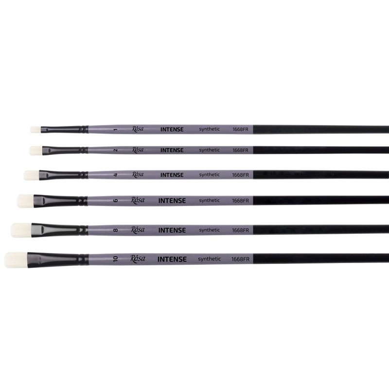 Čopiči iz serije INTENSE so izdelani iz trdih belih sintetičnih vlaken, ki predstavljajo odlično alternativo naravnim ščetinam pri delu z gostimi barvami ter pri ustvarjanju izrazitih, teksturiranih potez. Elastična sintetična vlakna dobro vpijajo in zadržujejo oljne ter akrilne barve, hkrati pa omogočajo natančen nadzor nad nanosom.