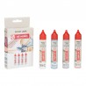 Efektna barva v tubi – liner je reliefno pisalo za ustvarjanje tridimenzionalnih linij in pik na praktično vseh rahlo vpojnih površinah, vključno z večino tekstila. Komplet vsebuje 4 perla- biserne barve sivo modro, sivo, belo, in taupe. Zelo primerni so za nanašanje gladkih biserov. Za optimalen 3D učinek konico držite tik nad površino in tubo rahlo stisnite. Čas sušenja je 24 ur. Namenjen je za notranjo uporabo. Če boste ustvarjali na tekstil, ga predhodno operite brez mehčalca. Po sušenju je tekstil pralen pri 40 stopinjah.