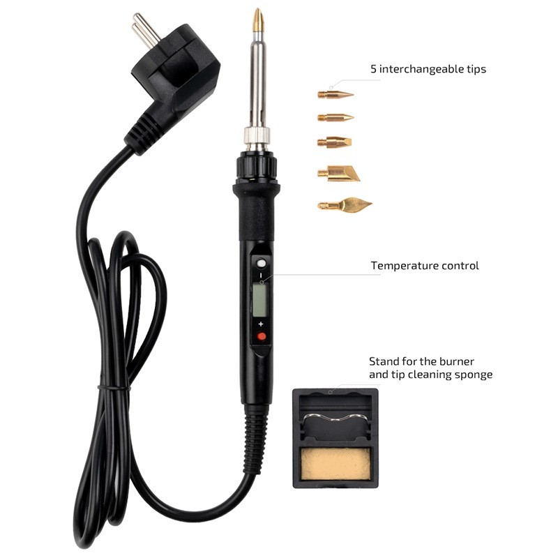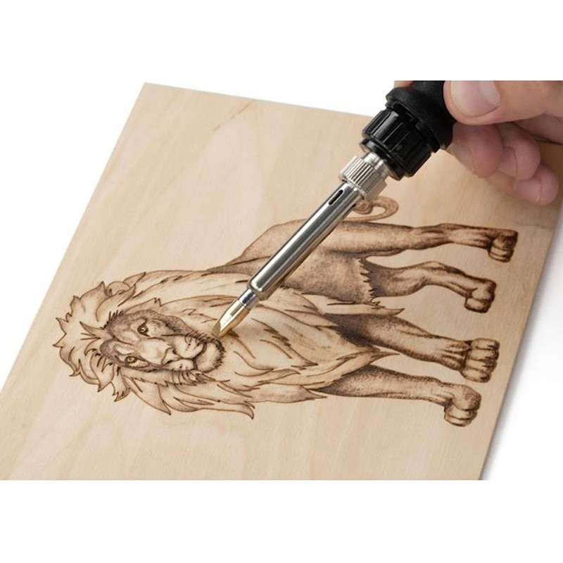 Orodje za žganje lesa, 5 konic, stojalo, gobica za čiščenje konic, podrobna uporabniška navodila.