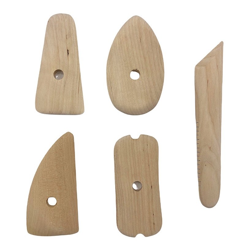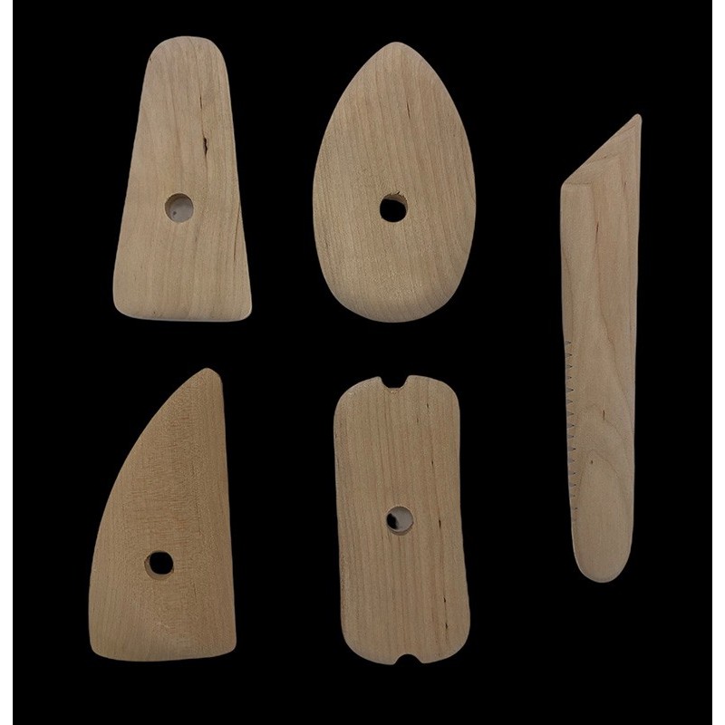 Komplet vsebuje 4 lesene modelirke-ledvičke velikost cca 11 x 5,5cm in klasično modelirko velikosti 17 x 2,5cm