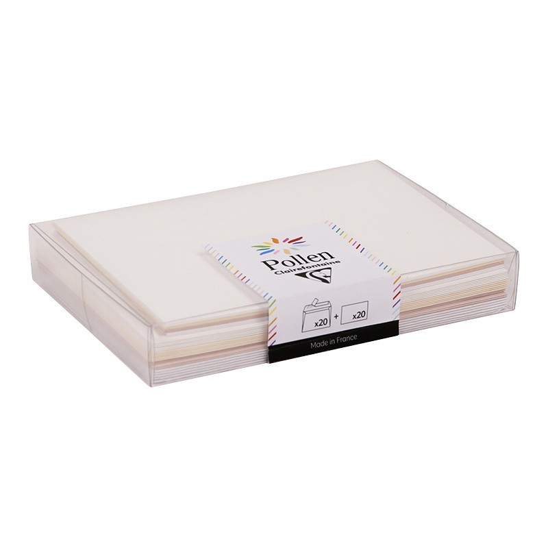 Komplet vsebuje 4 barve x 5 kosov voščilnic enojnih kartončkov velikosti 110x155mm 210g. in kuverte 114x162mm 120g.